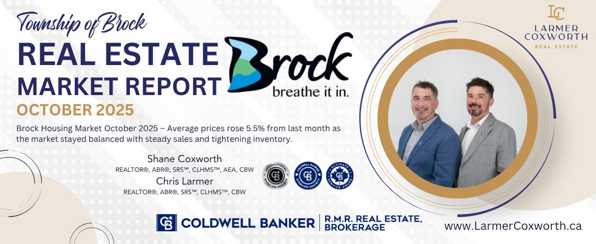 The Brock Township real estate market in October 2025 showed signs of stability and moderate growth, with prices inching up from last month and market conditions continuing to hover in balanced territory. While average sale prices remain below last year’s levels, the market is showing resilience as buyers and sellers adjust to more realistic expectations.